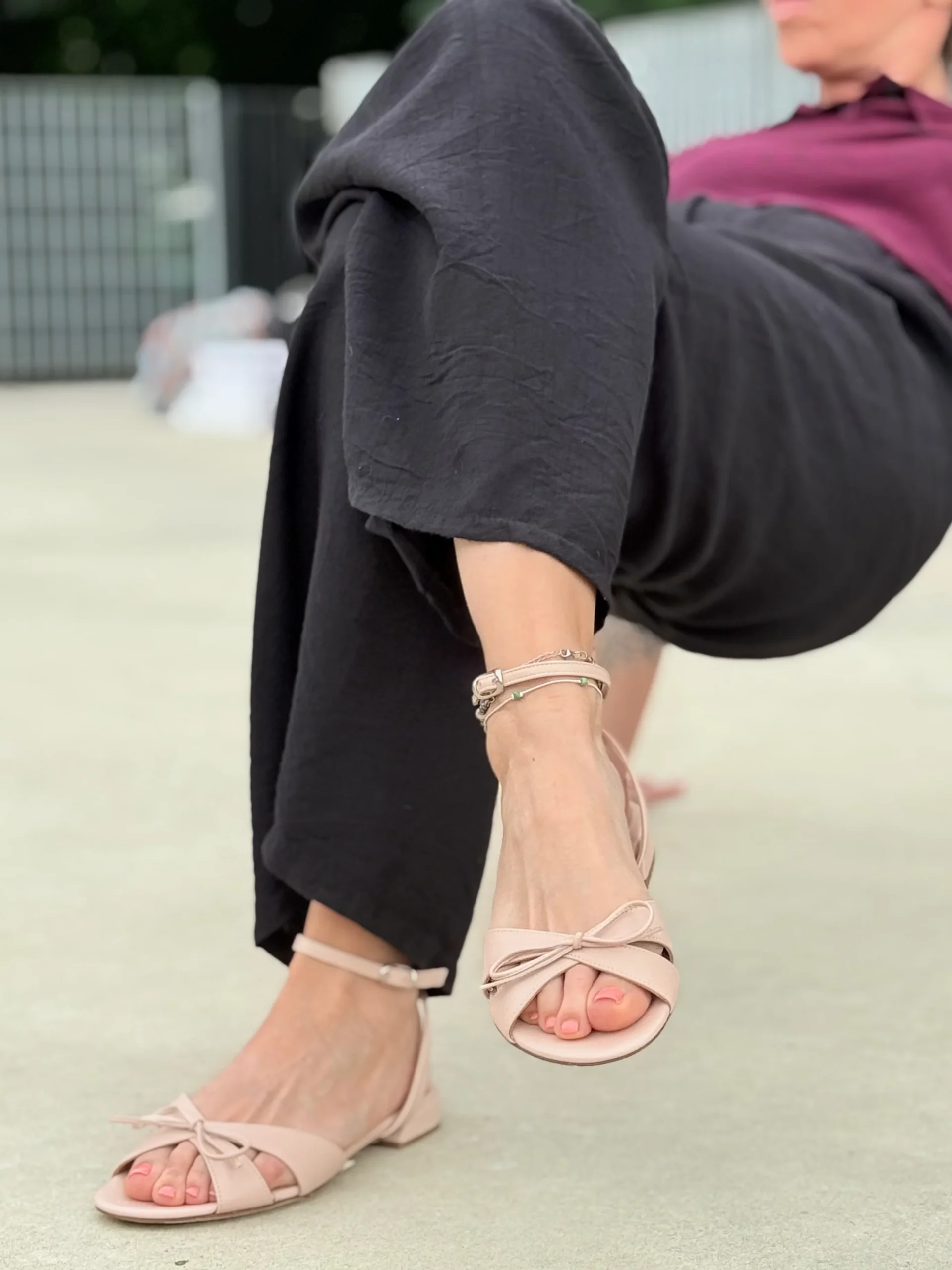 Realizzato in nappa morbida color nude, questo modello aperto si distingue per il suo elegante fiocco davanti in tinta, che dona un tocco delicato e femminile.