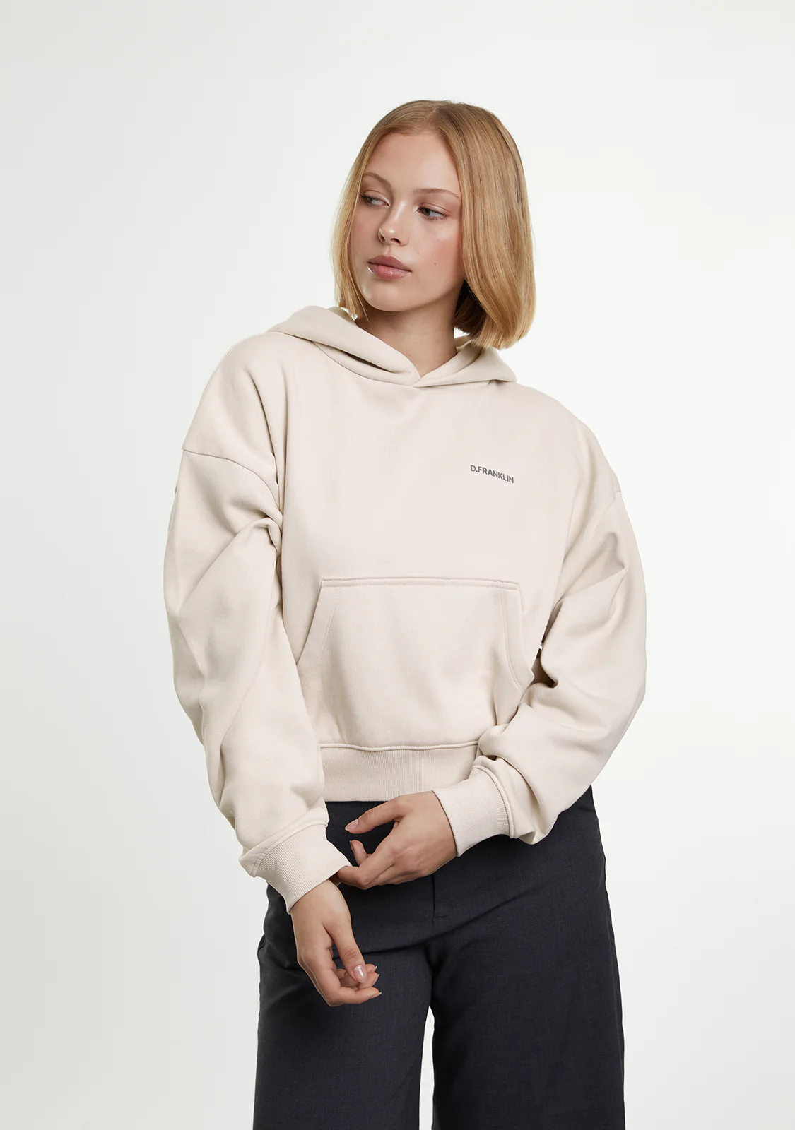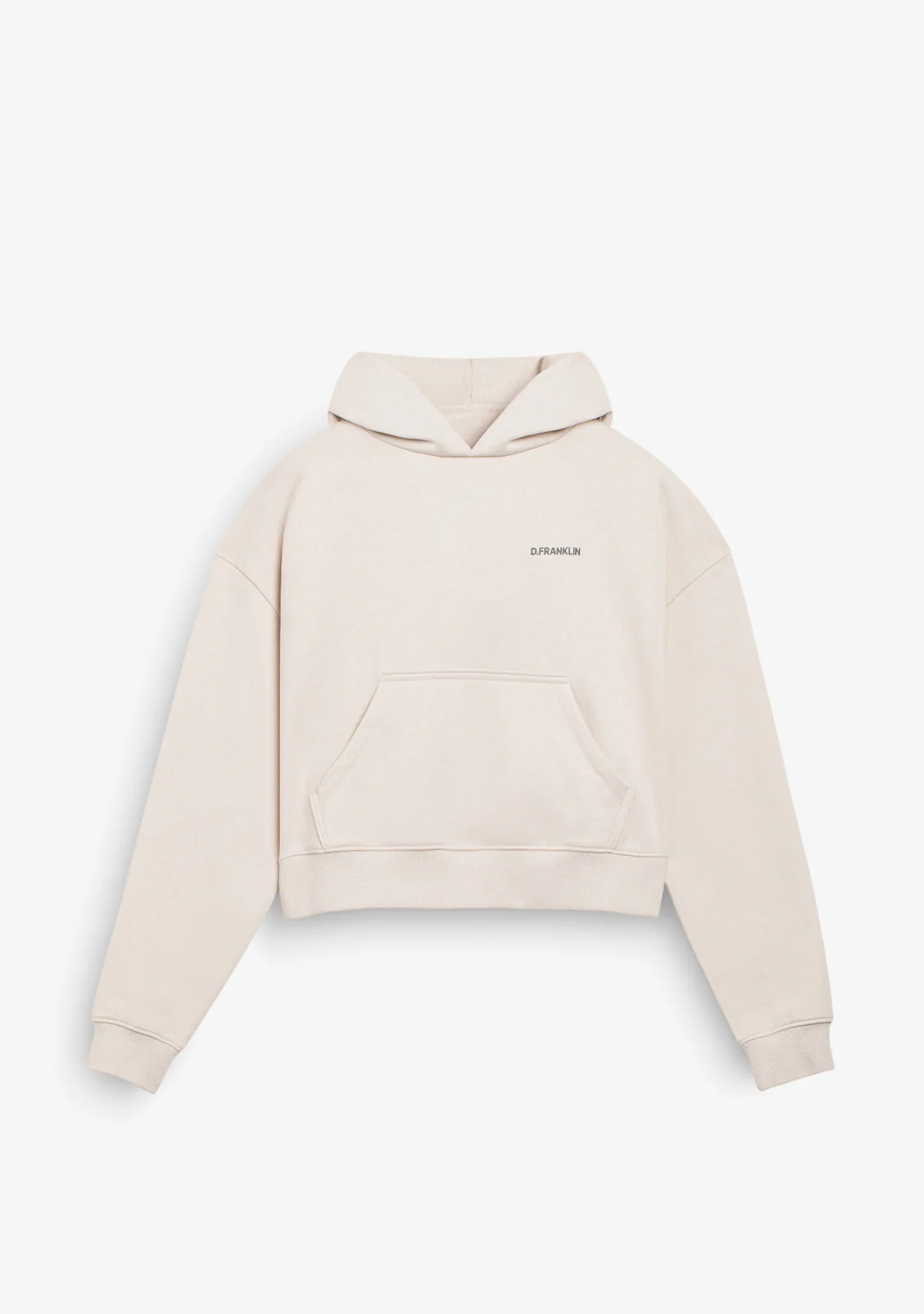 Questa felpa grigia corta con cappuccio presenta il logo D.Franklin sulla parte superiore sinistra in nero a contrasto. Inoltre, sul retro presenta un design esclusivo dello stesso colore.