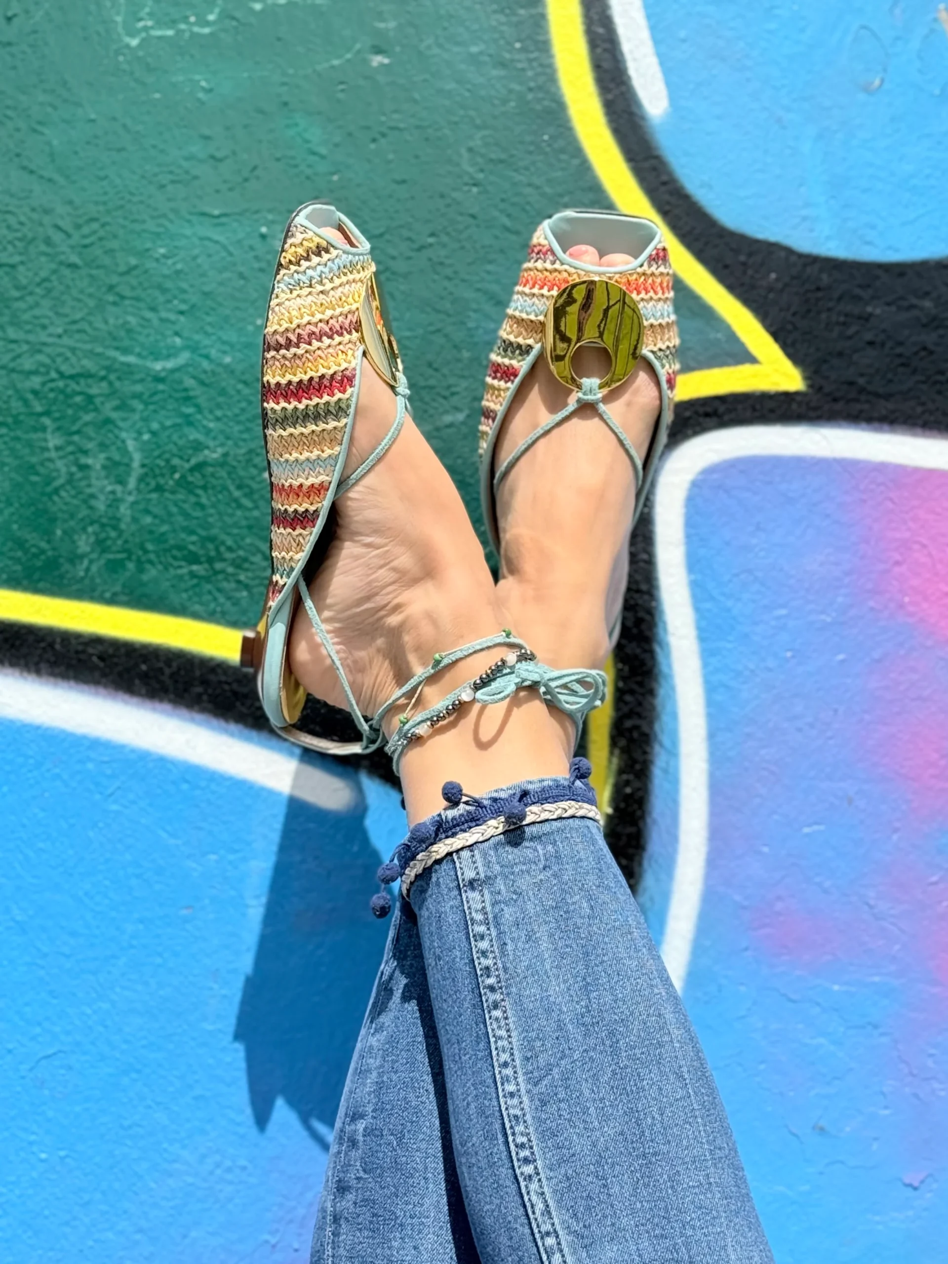 Un tocco di colore, leggerezza e carattere: Zina è la ballerina perfetta per le giornate estive, da mattina a sera. Realizzata in rafia multicolore, è un piccolo mosaico artigianale che illumina ogni passo. L’accessorio dorato sulla tomaia cattura la luce e valorizza i piedi abbronzati, per un’eleganza d’impatto.